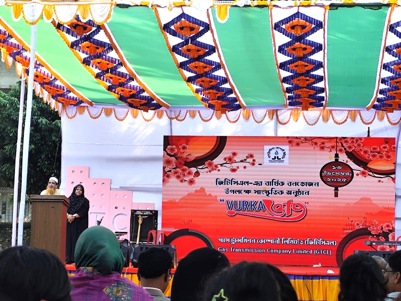 গ্যাস ট্রান্সমিশন কোম্পানী লিমিটেড (জিটিসিএল) এর বার্ষিক বনভোজন ২০২৫-২৬ গত ১৩ ডিসেম্বর, ২০২৫ তারিখ রোজ শনিবার, রাঙ্গামাটি ওয়াটার ফ্রন্ট রিসোর্ট, চন্দ্রা, গাজীপুর-এ আনন্দঘন পরিবেশে অনুষ্ঠিত হয়। বার্ষিক বনভোজনে জিটিসিএল পরিচালনা পর্ষদের সম্মানিত চেয়ারম্যান জনাব ড. মো: হাফিজুর রহমান ভূঞা, কোম্পানির ব্যবস্থাপনা পরিচালক প্রকৌ. মো: হারুন ভূঁইয়া, মহাব্যবস্থাপকবৃন্দ, প্রকল্প পরিচালকবৃন্দ, উপ-মহাব্যবস্থাপকবৃন্দ, অবসরপ্রাপ্ত ঊর্ধ্বতন কর্মকর্তা এবং কোম্পানির সকলস্তরের কর্মকর্তা ও কর্মচারীগণ স্বপরিবারে অংশগ্রহণ করেন। উক্ত মিলন মেলায় মধ্যাহ্নভোজ পূর্ববর্তী সময়ে সকলস্তরের কর্মকর্তা/কর্মচারীবৃন্দ, আমন্ত্রিত অতিথি ও পোষ্যদের জন্য বিভিন্ন প্রকার খেলাধুলা এবং মধ্যাহ্নভোজ পরবর্তীতে মনোজ্ঞ সাংস্কৃতিক অনুষ্ঠান এর আয়োজন করা হয়। উক্ত অনুষ্ঠানে জিটিসিএল বোর্ডের মাননীয় চেয়ারম্যান ও কোম্পানির সম্মানিত ব্যবস্থাপনা পরিচালক মহোদয় উপস্থিত কর্মকর্তা, কর্মচারী ও অতিথিদের উদ্দেশ্যে বক্তব্য রাখেন। পরিশেষে, বার্ষিক বনভোজন কমিটির আহবায়ক বনভোজনে অংশগ্রহণকারী সকল কর্মকর্তা/কর্মচারী ও আমন্ত্রিত অতিথিবৃন্দ, বনভোজন সংশ্লিষ্ট উপদেষ্টা কমিটি এবং বিভিন্ন উপ-কমিটির আহবায়ক ও সদস্যদেরকে কৃতজ্ঞতা ও ধন্যবাদ জ্ঞাপন করে অনুষ্ঠানের সমাপ্তি ঘোষণা করেন।